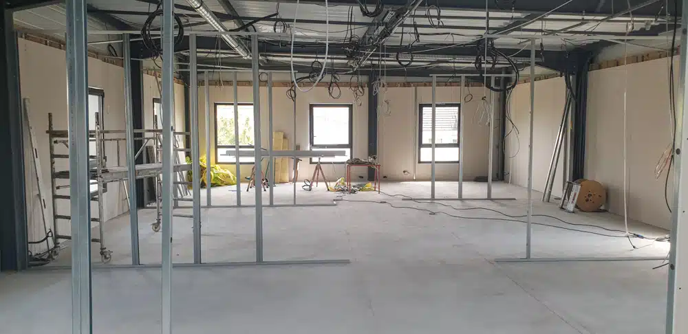 Since the construction project began, we have demolished a separate office block that was previously rented out, built a new office block onto the main building, and refurbished the main building, the warehouse, and our lorry collection and delivery areas. New communal spaces for the DEBATEAM have also been built.