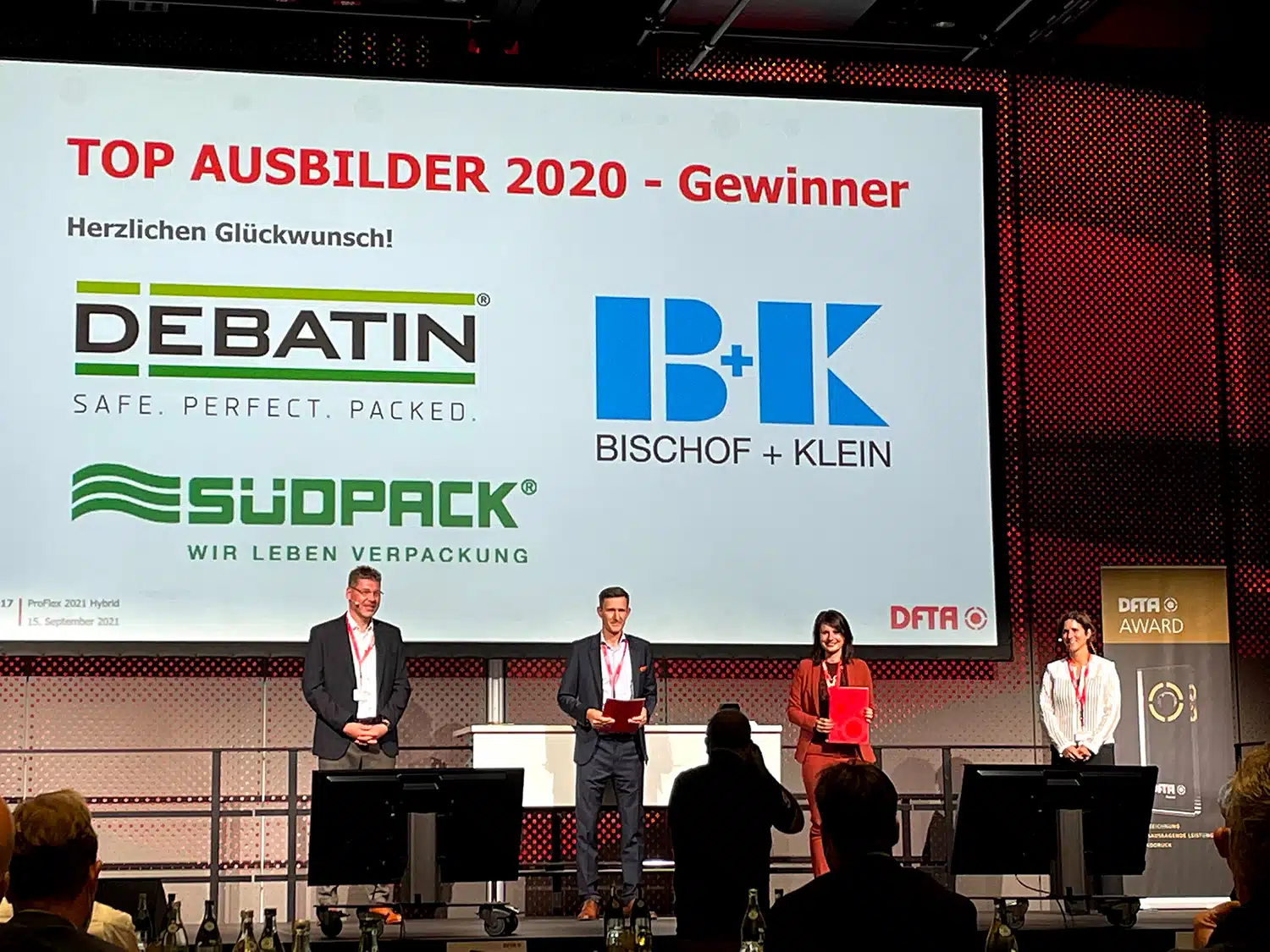 In light of this dedication, DEBATIN was voted a TOP vocational training provider in 2020. The award was conferred by the DFTA (Professional Association of Flexographic Printing). Established in 1979, the Association now represents some 300 members who are involved in some way or other with the flexographic printing industry. As well as printing companies, members include institutions, colleges, universities, businesses working in pre-print areas, suppliers – and Anton Debatin GmbH. The award ceremony was held during the ProFlex 2021 trade fair in Constance last September.