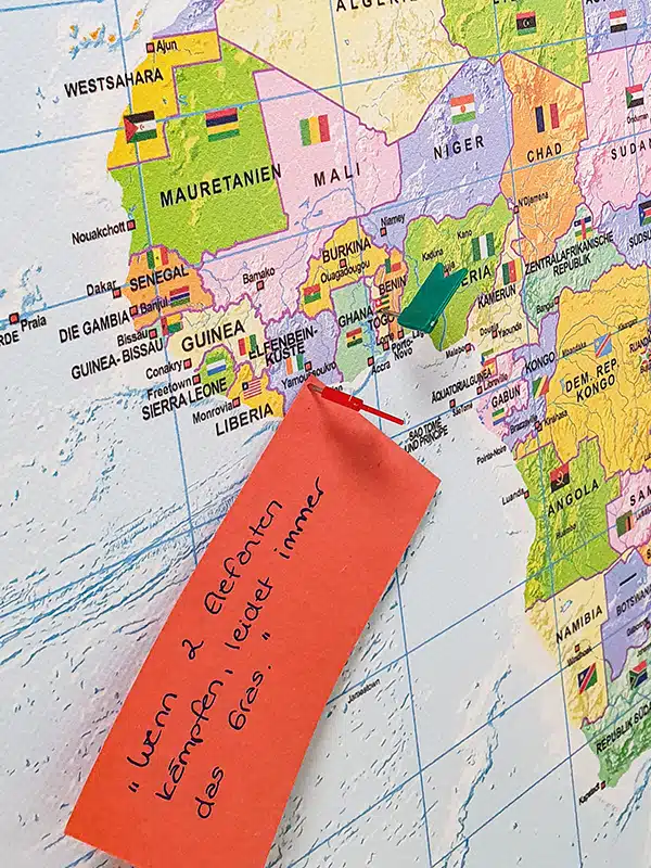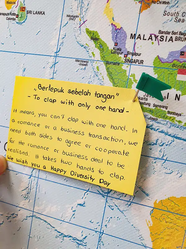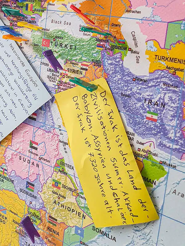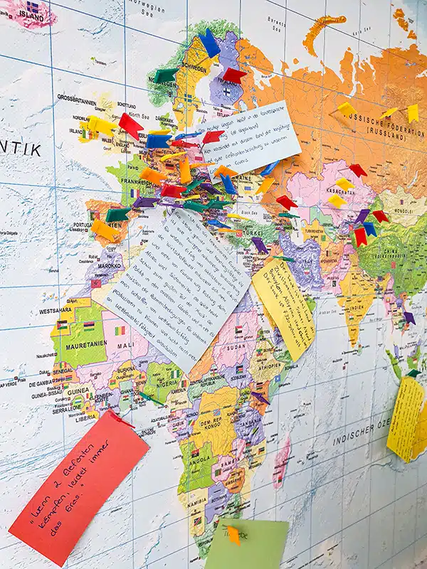 After marking these countries by means of pins, we also encouraged them to attach post-its with proverbs, pictures and interesting snippets of information from the respective country.